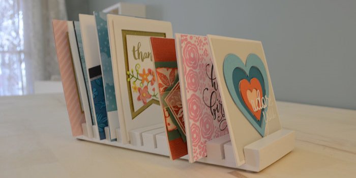 And, finally, for all of the card makers out there! The Card Stand/Drying Rack can be used cards-in-progress, finished cards or even envelopes and can hold up to twelve. It is made from white expanded PVC so it’s very strong. We really love its clean lines.