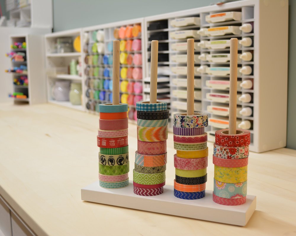 If you have jumped on the washi tape bandwagon, then you may be interested in the Washi Tape Stand. It is a handcrafted stand with 4 evenly spaced dowels to hold all of your rolls of washi. Wouldn’t it be great to get your rolls out of a disorderly box and put them in rainbow order right at your fingertips on your desk? We think yes!